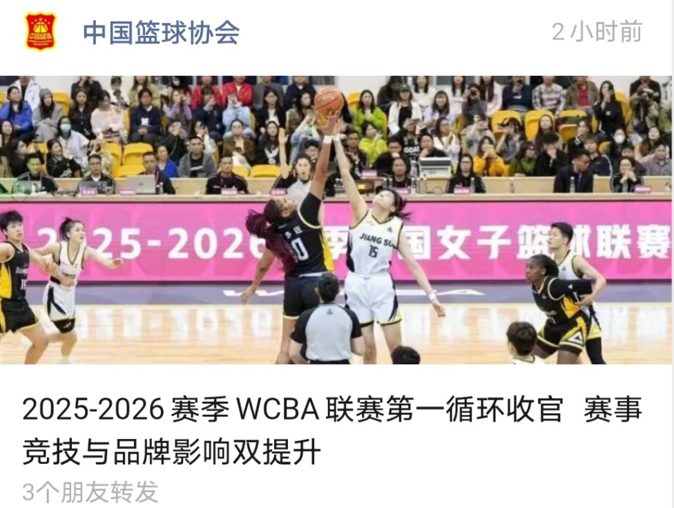 近日,中国篮协发表了一篇标题为《2025-2026赛季WCBA联赛第一循环收官,赛事竞技与品牌影响双提升》的文章,文章中写到,四川女篮发放消费券,带动消费约500万元。