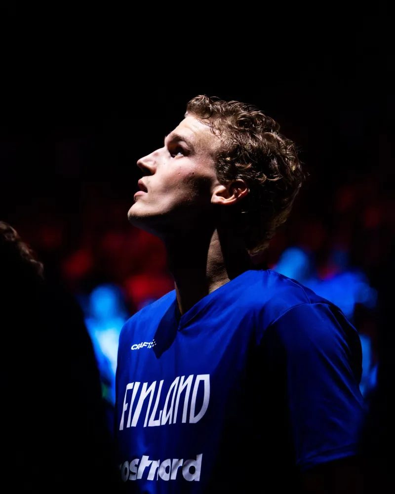 虎扑08月31日讯 爵士官方更新X,晒出一张爵士球员劳里-马尔卡宁在国家队的赛场照与球迷分享。